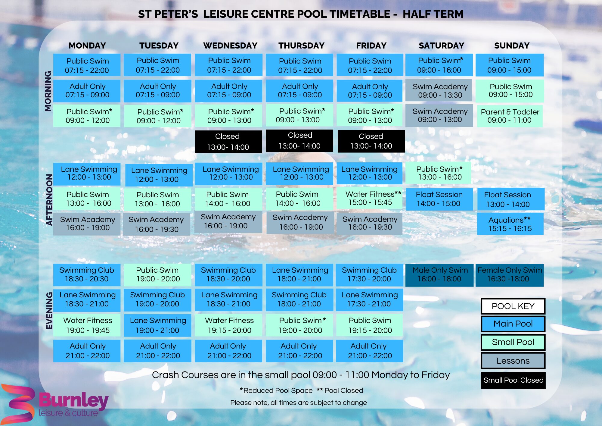 Click to view the St Peter’s Half Term Pool Timetable